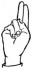 На ћирилици написано ДИНА БАДРИЋ састоји се из 10 слова [?]. Исписано ћириличном једноручном азбуком за глувонеме:
